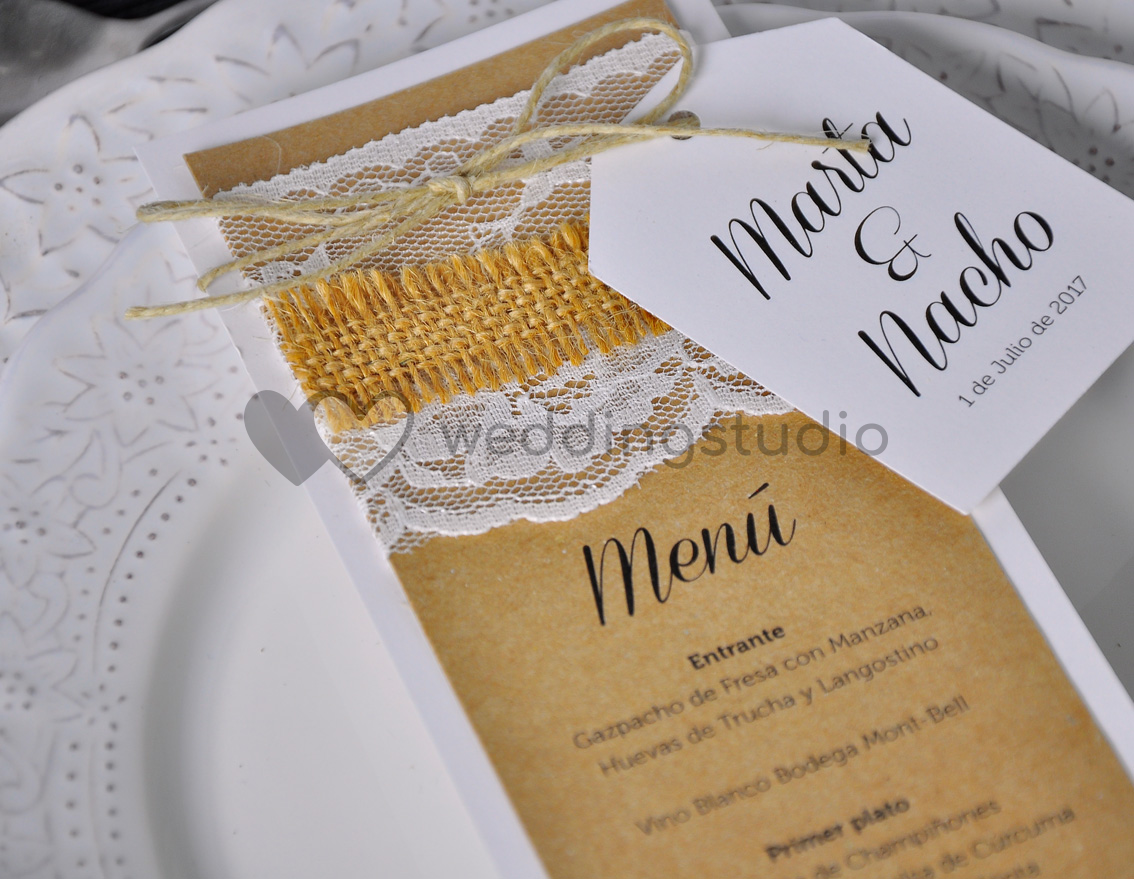 INCLUYE: Minuta + cordel cañamo + blonda blanca + etiqueta
